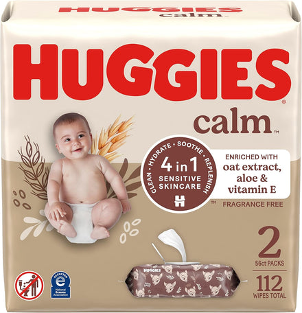 • Huggies Calm Baby Wipes: 10 push button packs of 56 unscented wipes (560 wipes total)