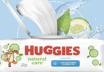 Huggies Natural Care Cucumber, Aloe and Vitamin E Baby Wipes are plant-based wipes* that are made to be gentler on sensitive skin.** Dermatologist-tested and hypoallergenic, Cucumber, Aloe and Vitamin E baby wipes contain no harsh ingredients . These baby wipes with cucumber, aloe and vitamin E have a light and refreshing scent. These disposable baby wipes come in packaging with cute Disney patterns for a delightful touch that will fit in great on your changing table, in your diaper bag and wherever you need a wipe! Additionally, the flip-top design and 1-Handed Dispensing makes it easy for you grab wipes with a single hand! (*70%+ by weight plant-based materials)(**vs Huggies Simply Clean)