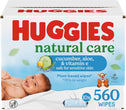 Huggies Natural Care Cucumber, Aloe and Vitamin E Baby Wipes, Hypoallergenic, Scented, 10 Flip-Top Packs (560 Wipes Total), Packaging May Vary