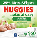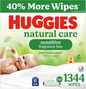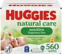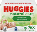 • 12 flip-top packs of 64 Huggies Natural Care Sensitive Baby Wipes, Unscented (768 wipes total), packaging may vary