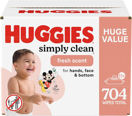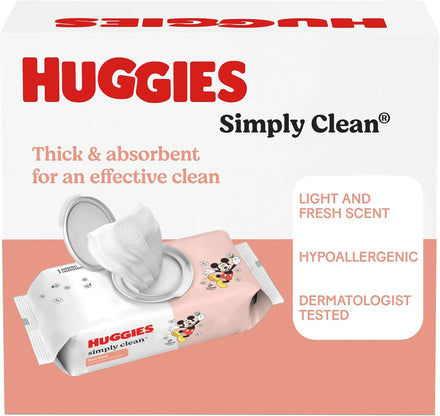 Huggies Simply Clean Fresh Scent Baby Wipes are now softer and stronger, making them a must-have for the whole family. Not only are they soft and safe for sensitive baby bottoms, but these scented wipes can also be used to wipe hands and faces for toddlers and children. Kids outgrow diapers, not messes, so the Simply Clean Fresh Scent disposable wipes are the perfect solution wherever you go. The Simply Clean Fresh Scent diaper wipes are hypoallergenic, dermatologist-tested and pH-balanced to help maintain healthy skin. These wipes also have a light, fresh scent for a more confident clean. The Huggies Simply Clean Fresh Scent Baby Wipes feature cute Disney-themed packaging. For the perfect diapering duo, pair Huggies baby wipes with Huggies baby diapers.