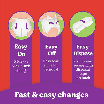 • Our slip-on baby diaper has easy tear sides for fast & easy changes