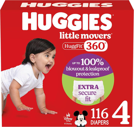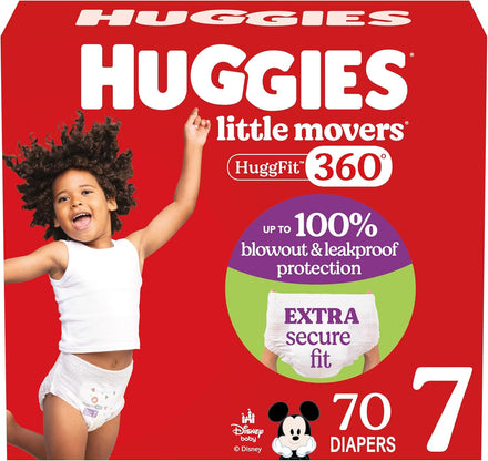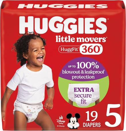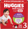 • Huggies Size 3 Baby Diapers, 26 Little Movers HuggFit 360° Baby Diapers with 360° Waistband, Size 3 (16-28 lbs); packaging may vary