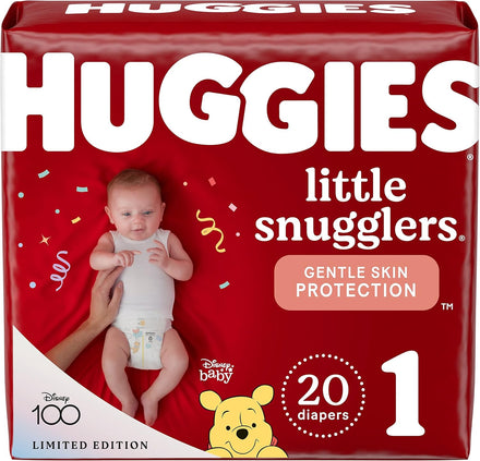 When it comes to keeping your little one clean and comfortable, Huggies Little Snugglers Diapers are the perfect choice. With up to 100% blowout and leak protection, Huggies is the only leading diaper brand with all around blowout protection* to help keep your baby clean. Front and back blowout blockers help Little Snugglers to have 28% fewer blowouts.**Huggies Little Snugglers newborn diapers offer gentle skin protection and showcase leg cuffs that create a comfortable seal to contain mess. These baby diapers feature Huggies' GentleAbsorb Liner*** that absorbs wetness on contact to help keep your baby’s skin clean and healthy. Made with your baby’s skin health in mind, our hypoallergenic diapers are made without phthalates, parabens, lotions, elemental chlorine and natural rubber latex. To ensure that you know when your baby’s diaper is ready to be changed, each diaper features a color-changing wetness indicator. Featuring adorable designs from Disney’s Winnie the Pooh, Little Snugglers Diapers are available in size Preemie (up to 6 lbs), size Newborn (up to 10 lbs), size 1 (8-14 lbs), size 2 (12-18 lbs), size 3 (16-28 lbs), size 4 (22-37 lbs), size 5 (27+ lbs) and size 6 (35+ lbs). For the perfect diapering duo, pair Huggies diapers with Huggies Natural Care Sensitive Baby Wipes! (*sizes 1-2 only; effective 6/19/2024) (**BM Leakage Size 1 versus leading store brand) (***Available in Little Snugglers sizes Preemie-2)