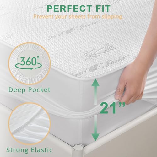 HUXMEYSON Queen Mattress Protector, Fully Waterproof Mattress Protector, Breathable and Noiseless Mattress Cover with 8-21 Deep Pocket, 60 x 80 Inch