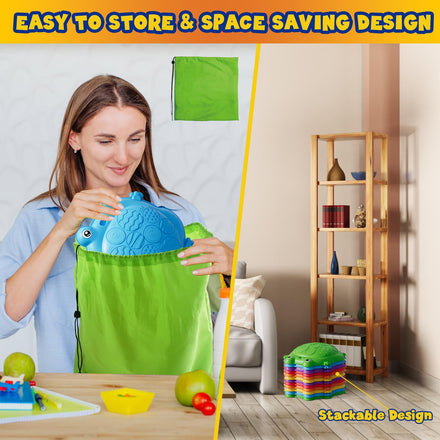 • EASY TO CLEAN AND STORE: No mess, have fun! Stepping stones outdoor are washable and easy to clean. With stackable features, frog shape design makes them look cute in the corner. There is also a storage bag for storing sensory toys set to save space