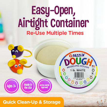 Hygloss Play Modeling Dough - 1lb. - Easter Basket Stuffer - Unscented Dough - Safe & Non-Toxic for Kids Arts & Crafts - Party Favors - Classroom Supplies, White