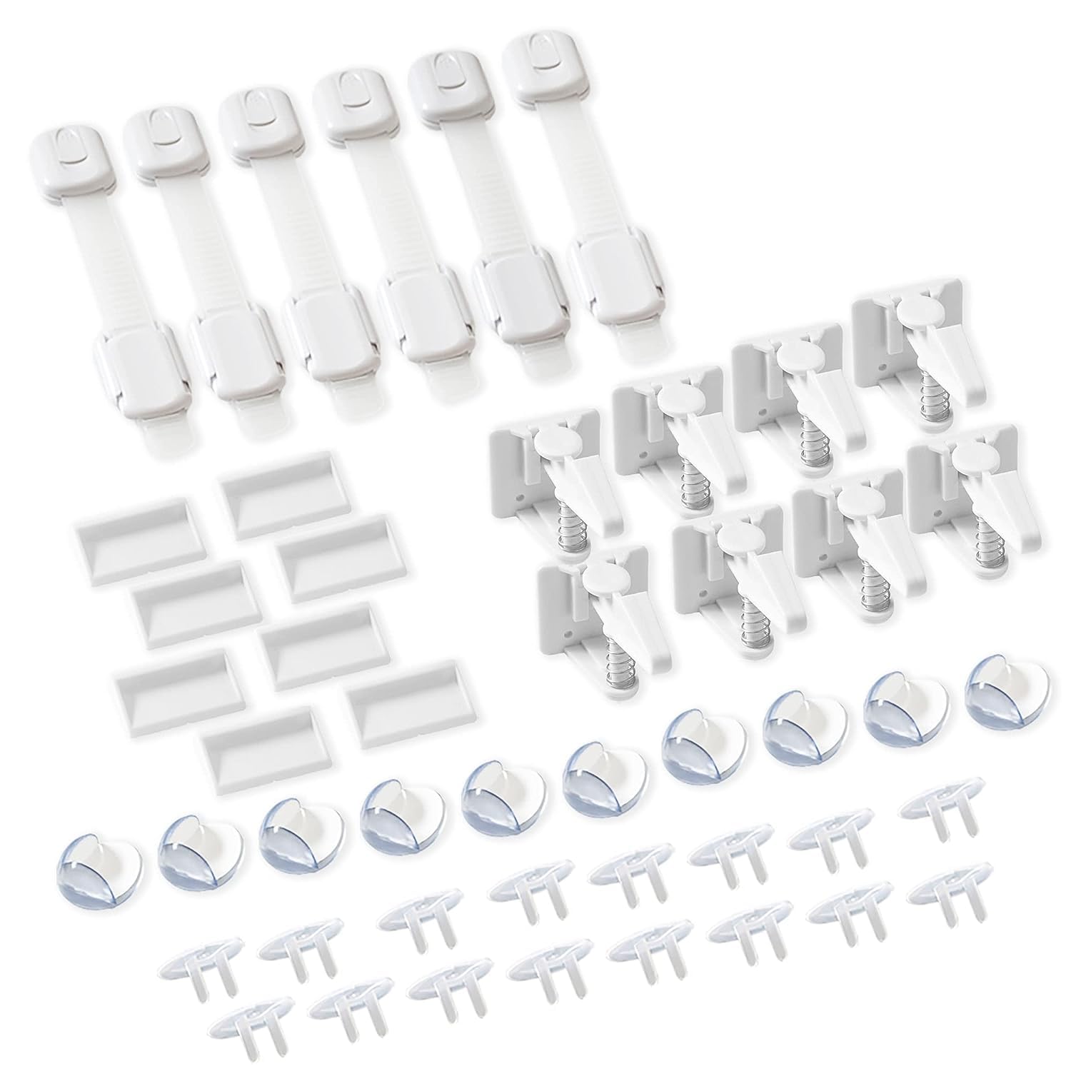 • All-in-one Child proofing Kit: Ensure the safety of your kids (up to 5 years) at home, with the easy to install 4-in-one, baby proofing kit. It includes 6 adjustable safety latches, 8 invisible cabinet locks, 16 plug covers for electrical outlets, and 10 clear corner bumpers making it a perfect for new parents and baby shower gifting