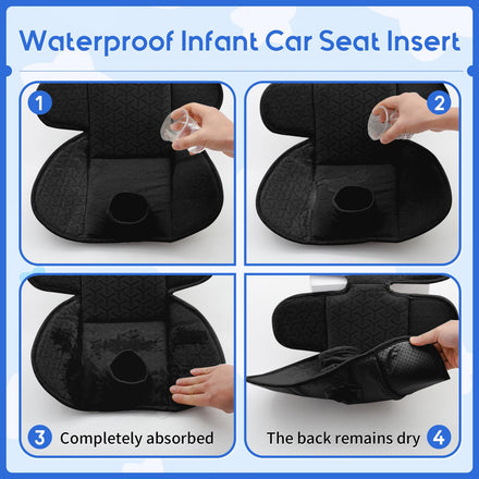• Infant Car Seat Insert with Crotch Protection: There is a raised soft "wall" over the holes, this deep edge design provides 360° protection for baby's crotch from friction, also preventing liquids and debris from entering the car seat.