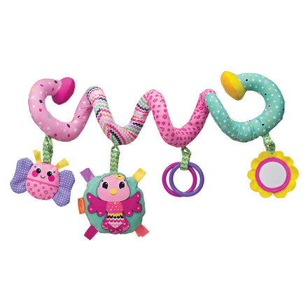 Details: This fun spiral includes four visually delightful hanging toys in perfect batting and grabbing range. Perfect for baby's gross motor skill development and visual tracking.