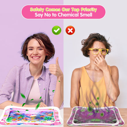 • Superior quality and 100% leak-proof: Our baby water mats are made from durable, 100% BPA-free and non-toxic, heavy PVC materials. Each of our game mats has been rigorously tested. It is durable and waterproof, so it doesn't wet your baby's body.
