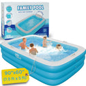 • This large inflatable pool measures approximately 90"x60"x19" when fully inflated, offering ample space for the whole family, both adults and kids.