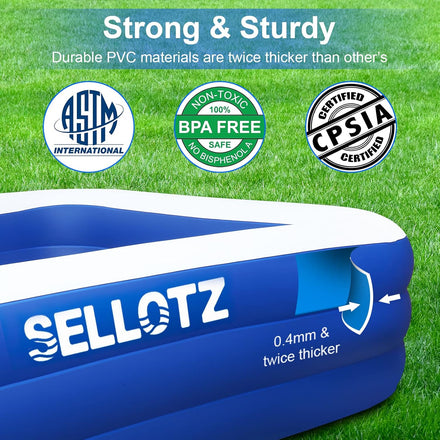• 【Safe & Durable Retangular Inflatable Pool】: SELLOTZ swimming pool for kids is made with Phthalate and lead free, Using BPA-free materials that meets the standards of international children’s toys, which is twice thicker than most in the market, reducing the risk of punctures and ensuring a long service life.