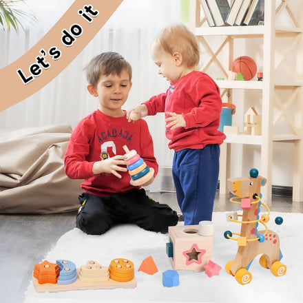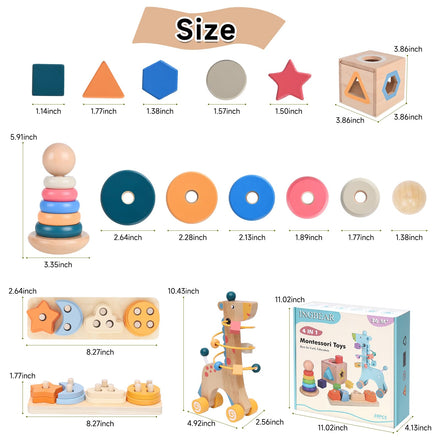 • 4-in-1 Montessori Toys Set: The INGBEAR Montessori toy set is the perfect educational choice for children 36 months and older. This complete set includes an engaging object box, a wooden stacking toy, a shape sorter, and an interactive giraffe—providing hours of fun and learning. Give your baby the best start in life with our thoughtfully designed toy set