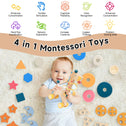 Ingbear 4-in-1 Wooden Montessori Toys for 3+ Year Old - Educational Sensory Toys for Toddlers Aged 3+, Baby Learning Toys for Boys and Girls, Christmas Birthday Gifts