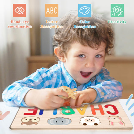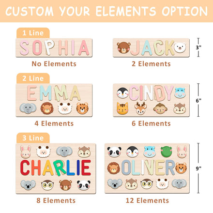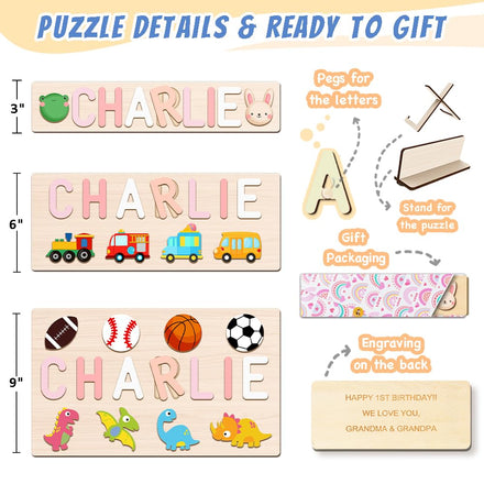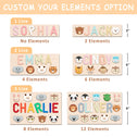 • 【Customized】:Our puzzle toys can be customized according to your baby's name, offering 54 cartoon elements and 8 color schemes for your choice. Including letter handles, customized stands, and engraved blessings on the back to create an exclusive toy for your baby.