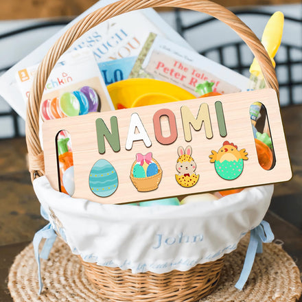 Ingifta Name Puzzle for Kids Personalized, Custom Baby Easter Basket Stuffers for Toddler Gifts, Wooden Puzzle Boy Girl 1st Birthday for 1-3 Year Old