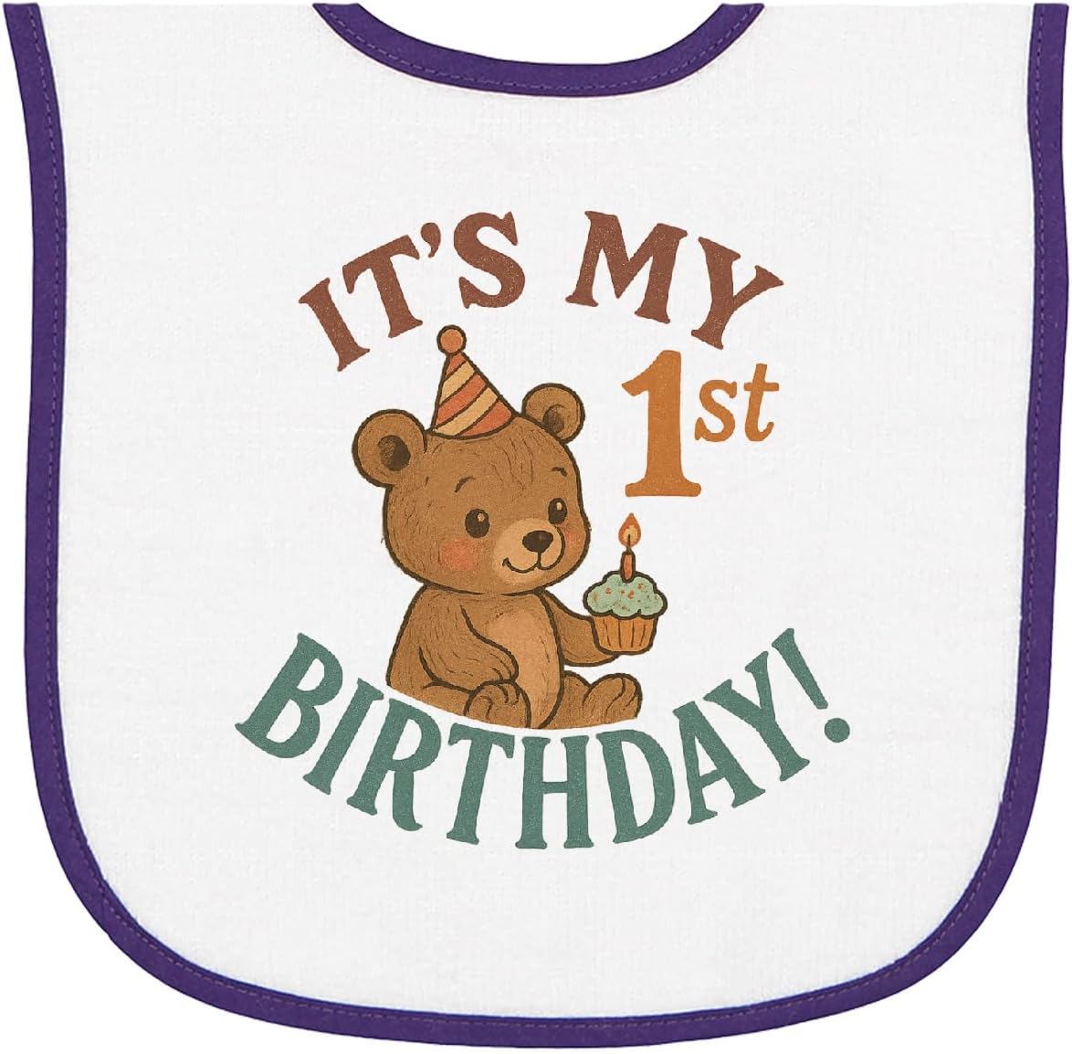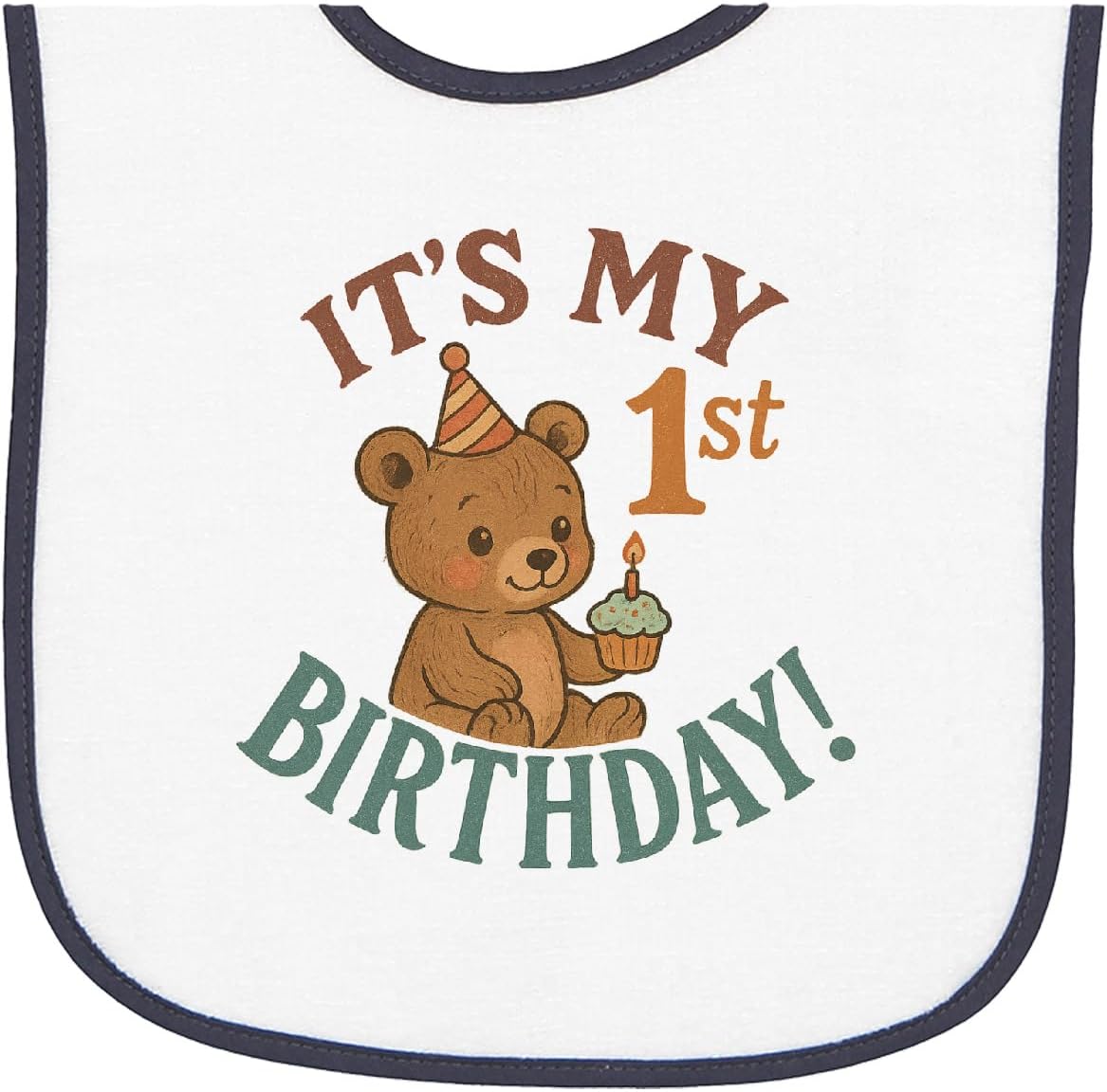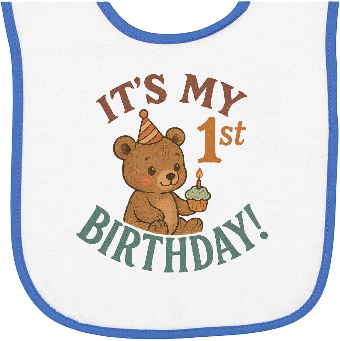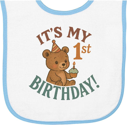 inktastic Cute Teddy Bear 1st Birthday Celebration Baby Terry Cloth Bib
