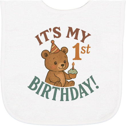 Celebrate your baby's special day with this adorable 'It's My 1st Birthday' design featuring a cute teddy bear holding a cupcake. Perfect for a memorable first birthday, this Baby Terry Cloth Bib will make any celebration extra special.