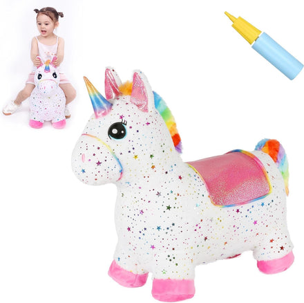 • 【BOUNCING UNICORN】This rainbow hopping unicorn, dreamy and exploratory. Kids just take one look, touch, and fall in love. Ride it to conquer indoor and outdoor spaces, stimulate your child's desire to ride a real horse.
