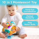 • [ 10 in 1 Montessori Toys] This Montessori toys includes 10 activity panels that offer different experiences. Such as spinner toy, whack a mole, steering wheel, Rocket Plug, Key Pairing, fun switch and so on. These are awesome montessori toys for 6 month+ as they keep infant busy and entertained for hours, fostering their creativity and imagination.