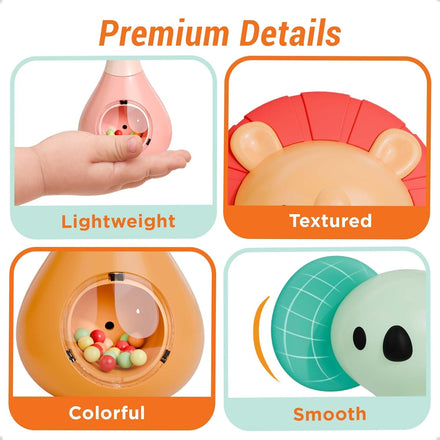 • 【Safe On-the-Go Essential】Crafted from soft, flexible silicone, the teething part gently soothes gum discomfort. Featuring a smooth structure ensures a safe and comfortable play experience. Compact and lightweight, they fit perfectly into diaper bags, turning car rides, plane travel, and outings into opportunities for sensory exploration anywhere.