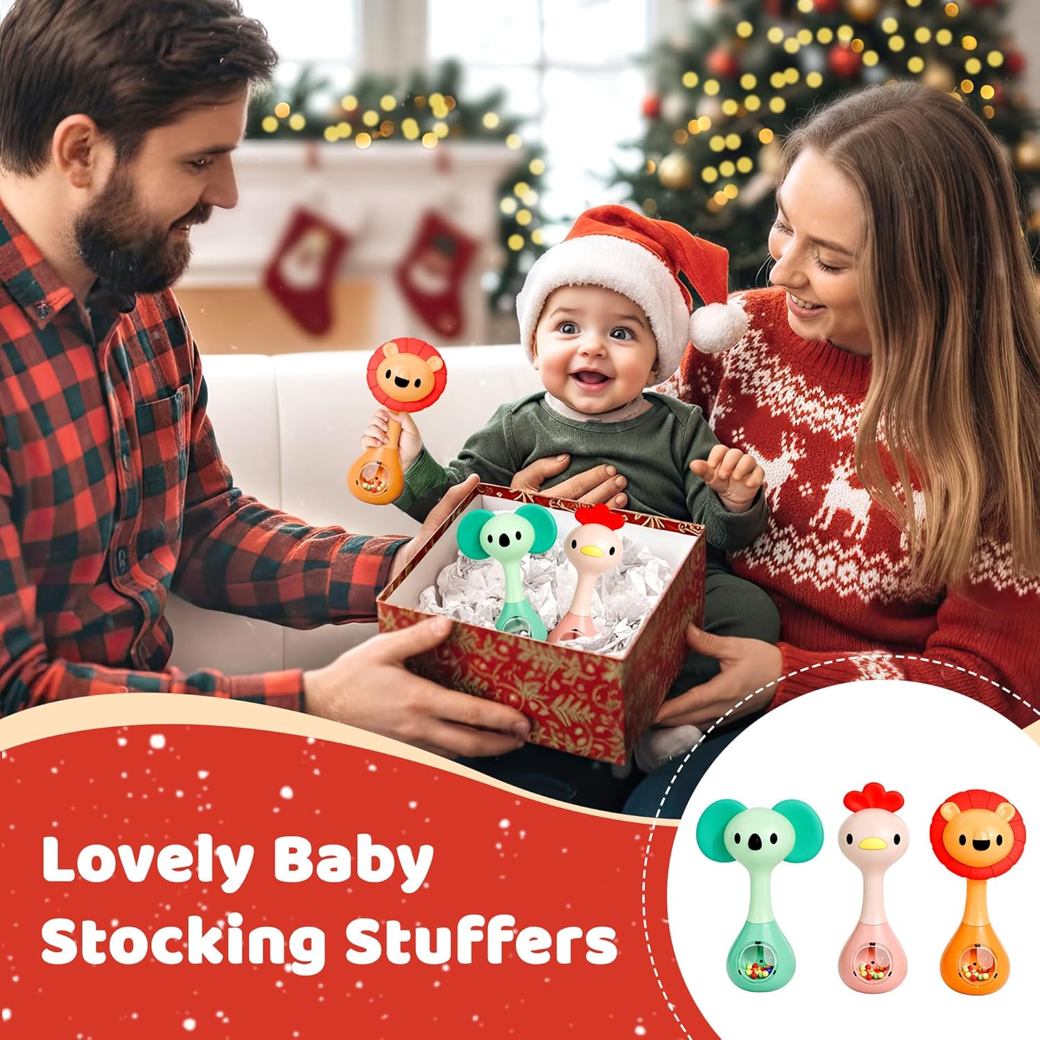 • 【Warm Gift for Newborns】A perfect gifting solution for baby showers, first birthday, Christmas, Easter, and more! This adorable rattle teether combines fun with learning, making it a hit with parents and babies.