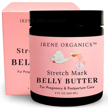 Irene Organics Organic Belly Butter for Pregnancy Stretch Mark Prevention and Treatment Award Winning Anti Stretch Mark Tummy Balm For Pregnancy and Postpartum 8oz - Hydrating Bump Cream