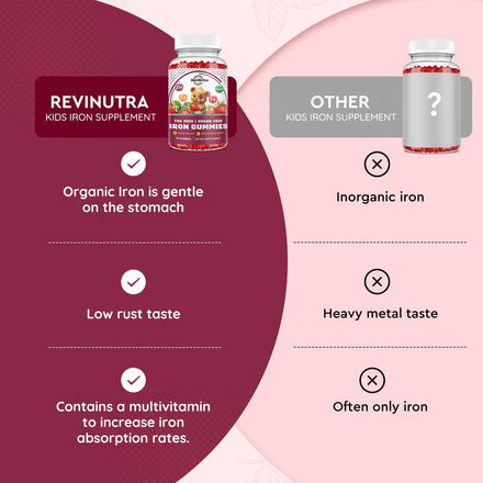 • SAFE, DELICIOUS & KID-APPROVED: Unlike many kids' vitamins, our iron gummies are free of sticky gelatin and sugars, reducing concerns about cavities. The natural strawberry flavor makes these soft, non-sticky gummies a hit, even for picky eaters
