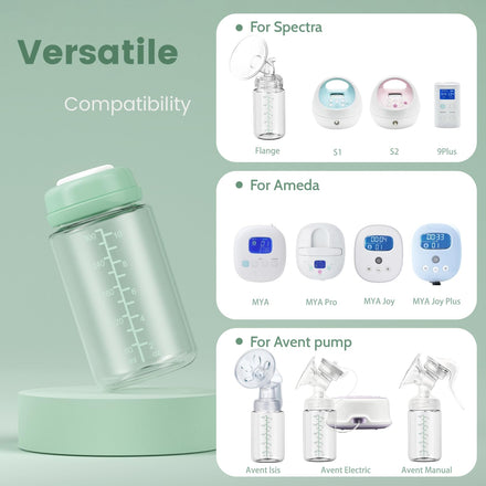 - 【Pumping Wide-mouth Bottle, Wide Compatibility】:Wide-Mouth storage bottle compatible with Spectra S1, S2, 9 Plus, SG, Motif Luna pumps, and nipples. And also compatible with Avent manual, Avent Electric pump, ensuring a seamless and secure connection for hassle-free pumping and storage.