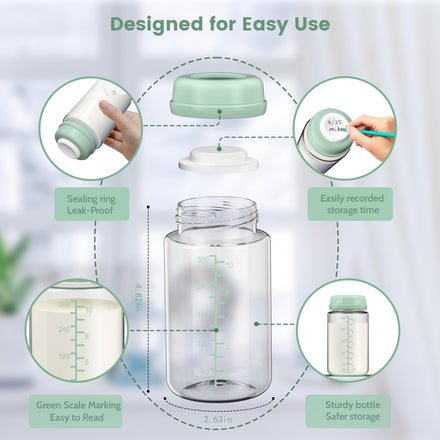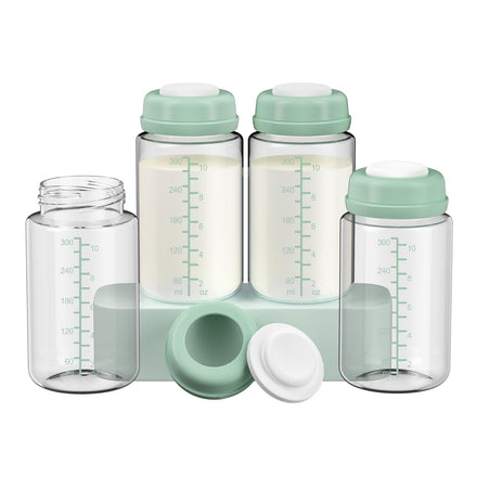 - 【4 Pack 10oz Perfect Capacity】:You can get 4 pack 10oz/300ml brestmilk storage bottle(40oz total), and provide white/blue/green color options! Each 10oz bottle with leak-proof sealing disc, Large capacity prevents mid-feeding refills, The triple-seal locking lid stays closed even in diaper bags – no spills, no wasted liquid gold.