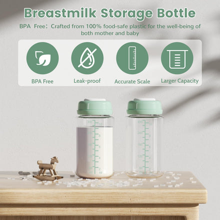 - 【Leakproof and Clearly Color Scale Marking】:The screw-on lid and sealing disc are specially designed to prevent the bottle from leaking. Ideal for freezing, travel, flights and camping. Green Color Scale Marking is easier to read, When the bottle is full of breast milk, the green graduations are easier to read than the white or transparent graduations(most bottle is transparent marking) .