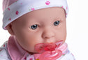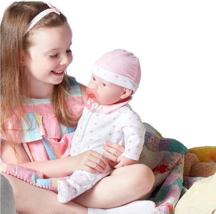 • SOFT, DURABLE AND READY FOR LOTS OF IMAGINATIVE PLAY // La Baby is easy to dress in a cute pink hat and matching sleeper with Velcro closure. Arrives with very own pacifier to help put baby to sleep.