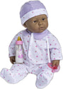 Looking for a big and huggable soft body doll with an adorable face? If so, then you (and the lucky child you gift this to) Will fall in love with the La Baby 20-inch play doll! The following reasons explain why La Baby is perfect for toddlers, and a favorite for pre-schools: + 20” size & soft body are easy for hugging and loving. + Sculpted hair & fixed open eyes means less moving parts. + Fragrance-free, BPA free & cloth body helps you keep it as good as new for years. + Doll includes an adorable removable outfit and hat. + Doll is packaged in a beautiful window gift box, that makes opening a gift even more exciting. + USA safety tested and approved for children 2 years plus. + JC Toys is a family-owned and operated USA company with over 30 years of doll making experience. Many of our customers tell us how their child loves to cuddle with The La baby just before bed. Now isn't that sweet! The La Baby 20-inch helps children learn what it's like to take care of others. Baby dolls offer kids a way to develop their self-help skills because children are hands-on learners. Dolls teach children how to take care of another person, add and remove clothing, interact with small objects, and pointing out body parts (like eyes, ears, mouth, and nose). in addition, dolls help children learn invaluable social skills, like communication. Wouldn't you agree that speaking to others is an important skill in life? JC Toys is a family run and operated business with origins dating back to 1982 in Spain - one of the top major toy-making and design centers in the world. Today, you can find 100s of dolls, playtime accessories, and more by JC Toys. Add smiles to a young child's face today by adding this La Baby doll to your cart - thank you!