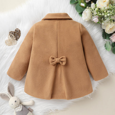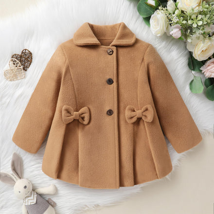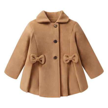 JEELLIGULAR Toddler Baby Girl Coats Kids Cloak Button Warm Thick Jacket Clothes Baby Fall Winter Outwear Clothes Set(Bowknot khaki,18-24 Months)