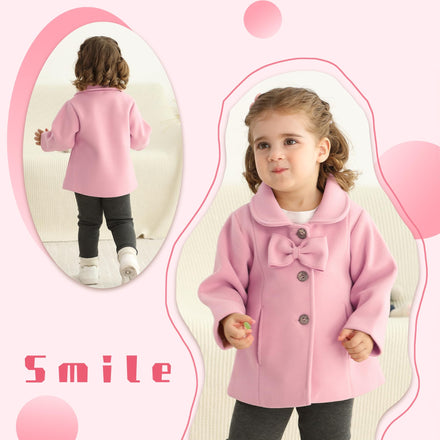 JEELLIGULAR Toddler Baby Girl Coats Kids Cloak Button Warm Thick Jacket Clothes Baby Fall Winter Outwear Clothes Set(Pink bow tie coat,12-18 Months)