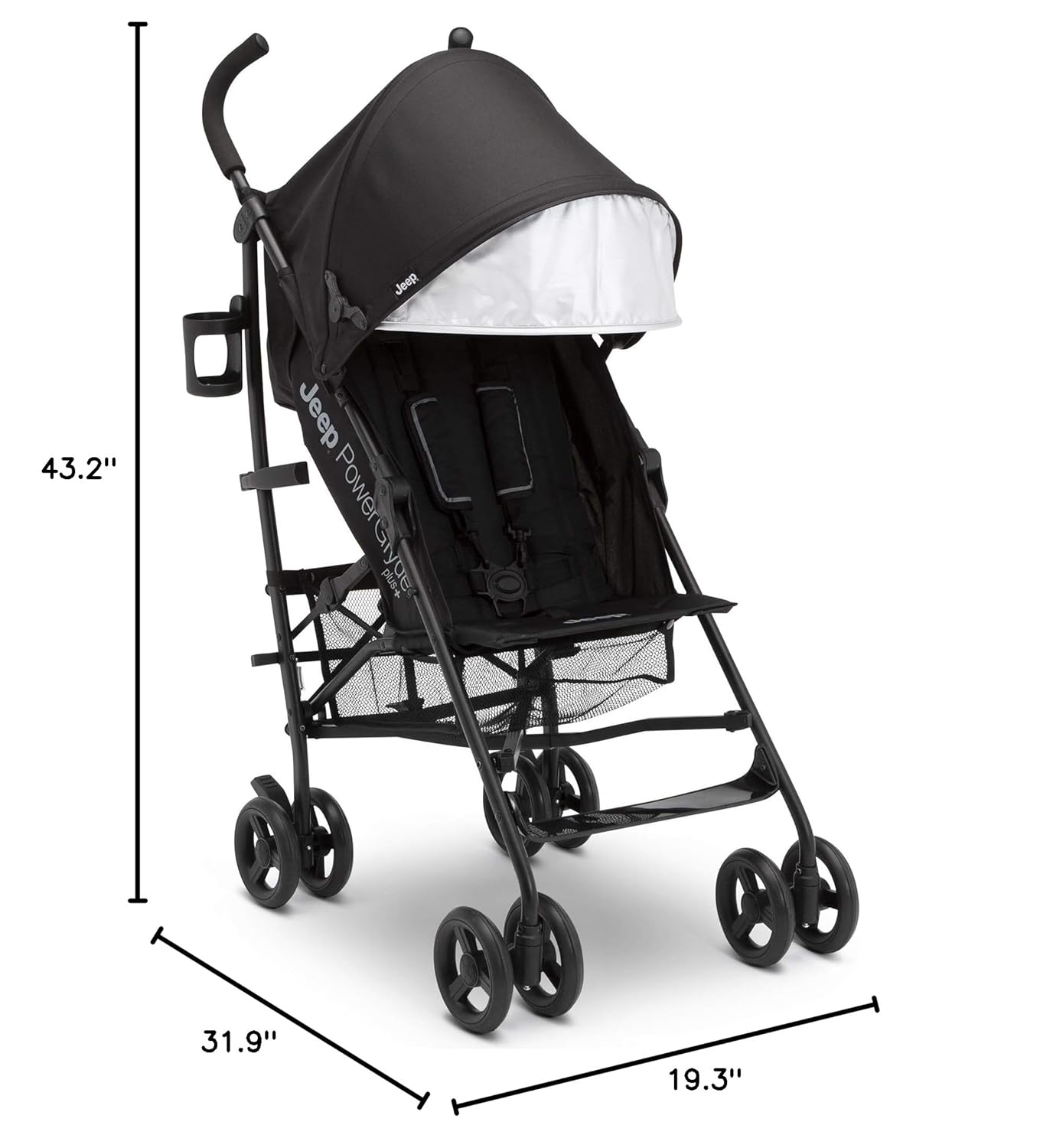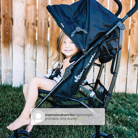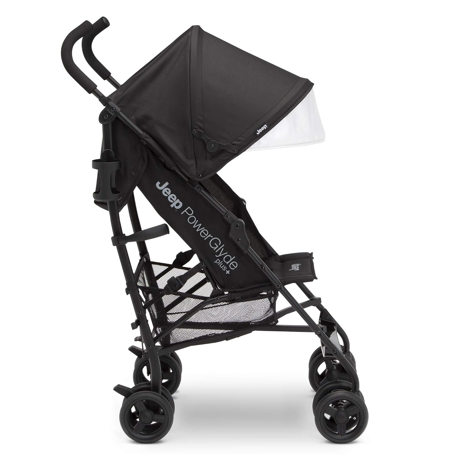 Jeep PowerGlyde Plus Stroller by Delta Children Lightweight Travel Stroller with Smoothest Ride, Aluminum Frame, 4-Position Recline, Extra Large Storage Basket, Black