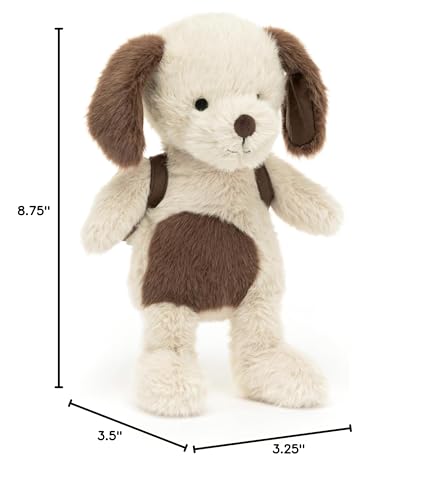 - Backpack Puppy: Your new favorite travel buddy, Backpack Puppy is ready to hit the road with a mini matching backpack. It even has tiny floppy ears! This stout sidekick loves to snuggle on the go, with soft oatmeal fur and cocoa ears, tail, and tummy. Backpack opens, with room for a small trinket.