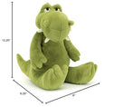 • Dimensions: Bryno Dinosaur measures 12.2 x 5.9 x 6.3 inches. Sitting height is 11.8 inches.