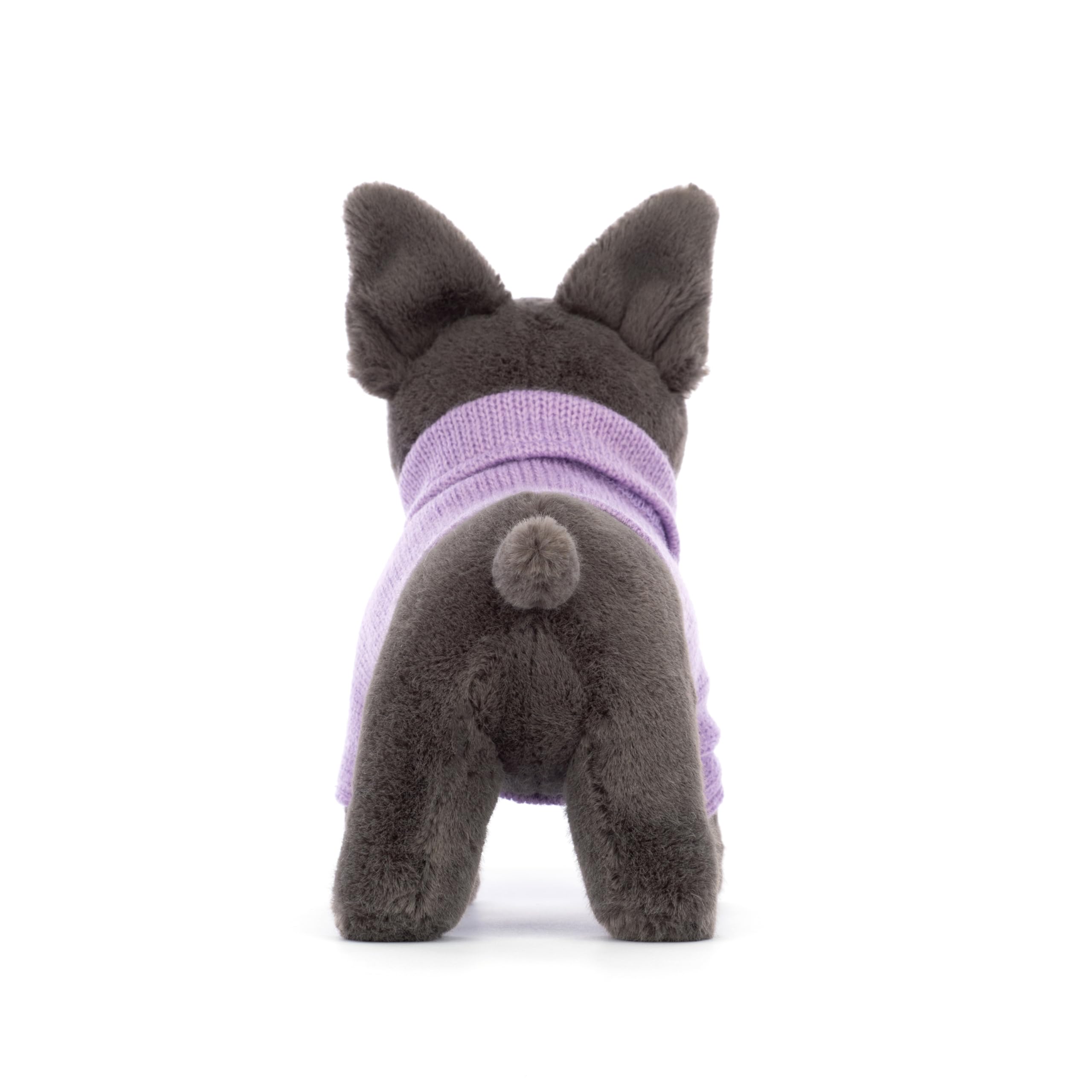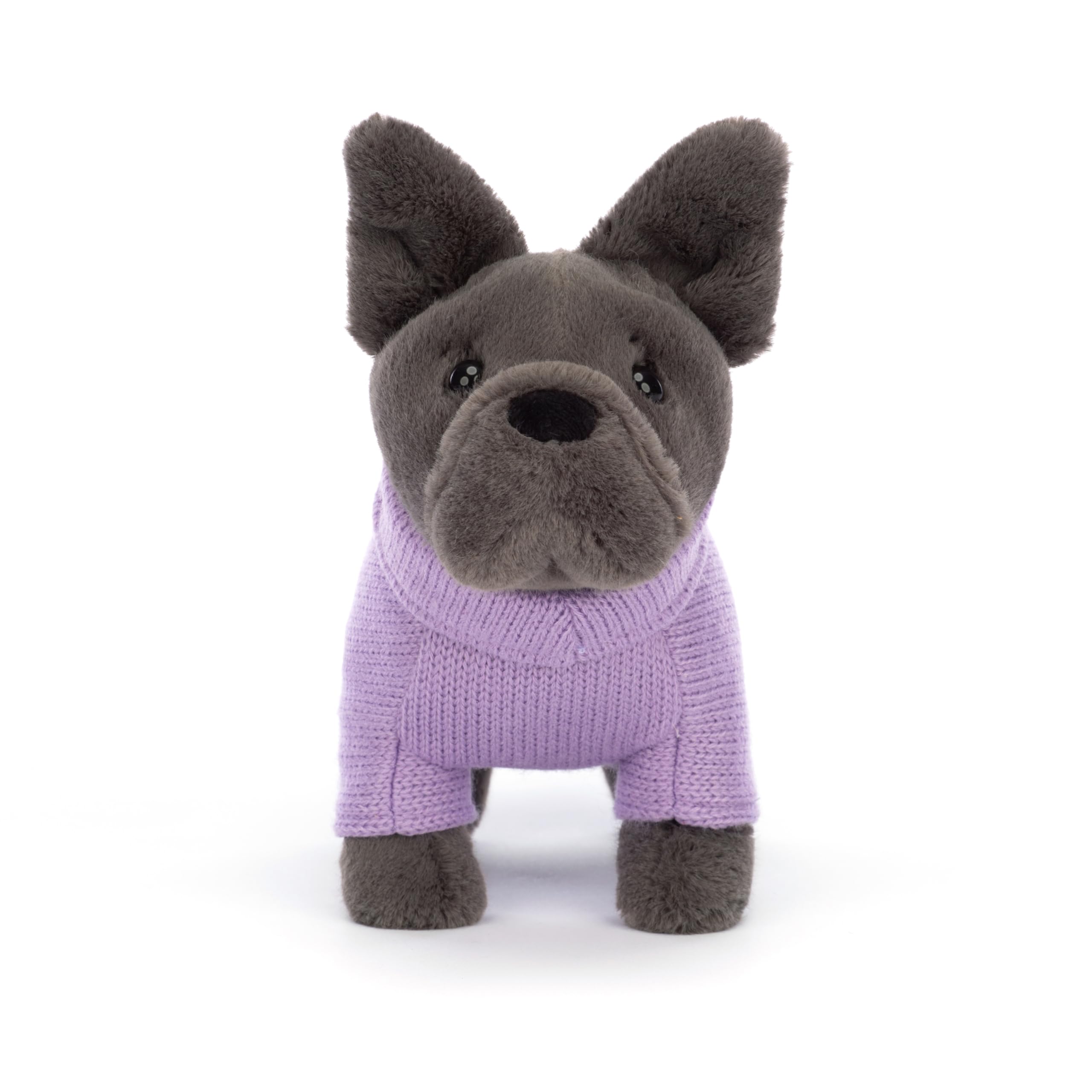 - Sweater French Bulldog Purple: Surprise your favorite Frenchie lover with this posh little pooch and fetch a compliment or two. Wearing a lilac turtleneck knit over soft slate-grey fur, Sweater French Bulldog Purple has raised ears, a classic rumpled muzzle, and an adorably curious expression.