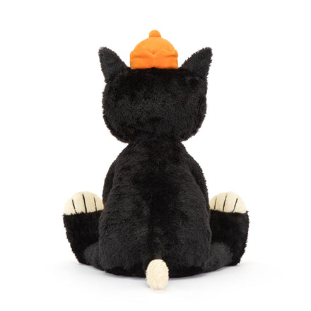 Details: The iconic Jellycat is here in soft black fur with cream tummy and paws. With a long tail and pointy ears, this cat has a bright orange velveteen jelly on his head!