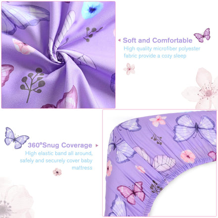 • 【Easy Care】: Simply toss this purple butterfly crib sheet into the washing machine on gentle cycle and it'll be as good as new. Try to avoid sun exposure, can dry it on the reverse side. The high-quality fabric ensures that standard crib sheet retains its shape, color, and softness even after multiple washes, making it a practical and long-lasting investment.