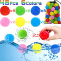 • PACK OF 48: Colorful Reusable Water Balls bulk set comes with 8 Red, 8 Pink, 8 Yellow, 8 Green, 8 Blue, 8 Navy Blue, and mesh drawstring bag with clip for washing cleaning and drying Water Soaker Balls. Our Reusable Water Balls for kids are 2.4 inch/ 6cm in diameter, perfect size Water Sponge Balls for water fights, best water fight supplies, water fight toys, water battle war toss toys & games party supplies for kids ages 3 4 5 6 7 8 9 10 11 12 year old boys and girls.