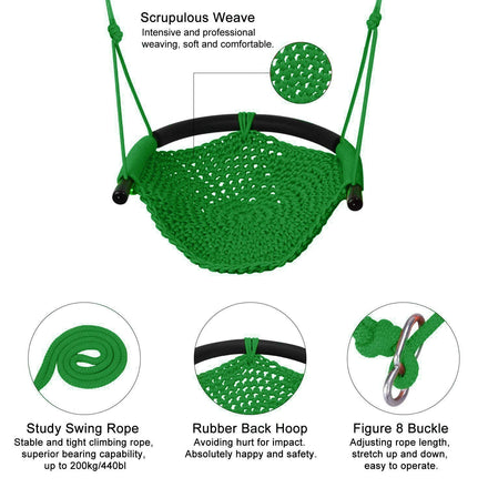 • 【Super fun indoor outdoor play】Kids and friends can enjoy this green rope swing seat or replacement swing set accessory parts on the kids’ room,easy to create a children's exclusive park anytime;In addition to this rope swing set not only suitable indoor,but also outdoor such as backyard,garden,playground,park,doorway and so on,a perfect DIY swing seat