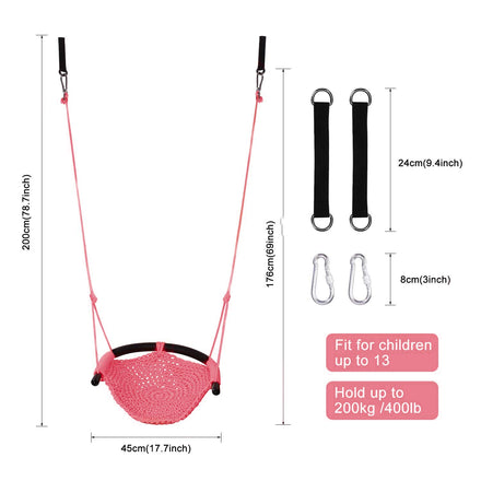 • 【Super fun indoor outdoor play】Kids and friends can enjoy this pink rope swing seat or replacement swing set accessory parts on the kids’ room,easy to create a children's exclusive park anytime;In addition to this rope swing set not only suitable indoor,but also outdoor such as backyard,garden,playground,park,doorway and so on,a perfect DIY swing seat