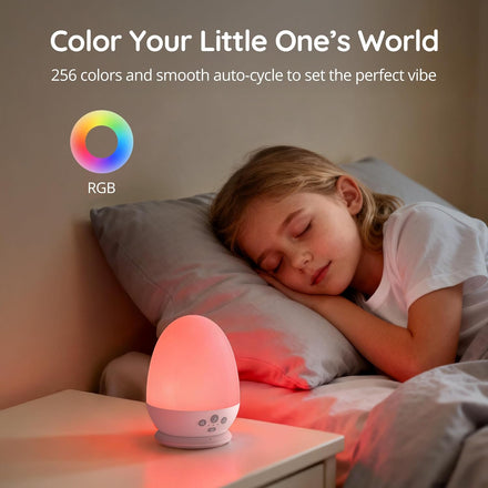 JolyWell Baby Night Light with Sound Machine, RGB Egg Light for Kids, 3 Color Temperatures, Stepless Dimming, USB-C Rechargeable, Touch Lamp for Nursery & Bedroom