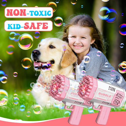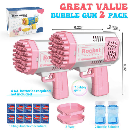 • BUBBLE MACHINE 2-PIECE SET: This bubble machine includes 2 pieces of bubble wands with extra 2 refills, and 10 bags of bubble concentrate. And 2 colors of bubble blower are provided to match any color (blue and pink)