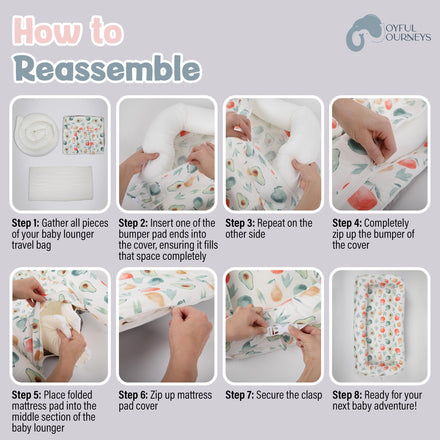 • 2-in-1 Lounger & Diaper Bag: No need to carry bulky bags and multiple baby gear! The Joyful Journeys infant lounger doubles as a baby bag, complete with pockets for diapers, wipes, and newborn essentials. Unzip, unfold it into a cozy baby nest for little one—perfect for naps, tummy time, or changing diapers on the go.