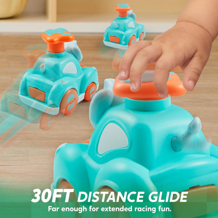 • Impressive Glide Distance: Designed to zoom over 30ft on smooth surfaces like carpets, providing thrilling chase and race play for your child. A fun choice for toddler cars and toot toot cars