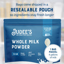 Judee's Gluten Free Whole Milk Powder 5 lb - Non-GMO, rBST Hormone-Free, Gluten- and Nut-Free - Baking, Pantry & Travel Essential for Reconstituting - Powdered Milk - Made in USA